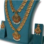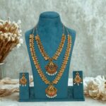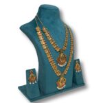 Bring divine elegance to your bridal look with this luxurious Temple Jewellery Set, featuring a long and short necklace with matching earrings. Designed with a rich Washebal gold finish, it combines traditional craftsmanship with modern durability — perfect for weddings, festivals, and special occasions.