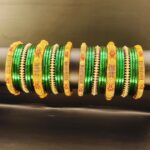 Elegant Red & Green Stone Bangle Set + Primum Quilty 4pc Moti Bangles FREE.