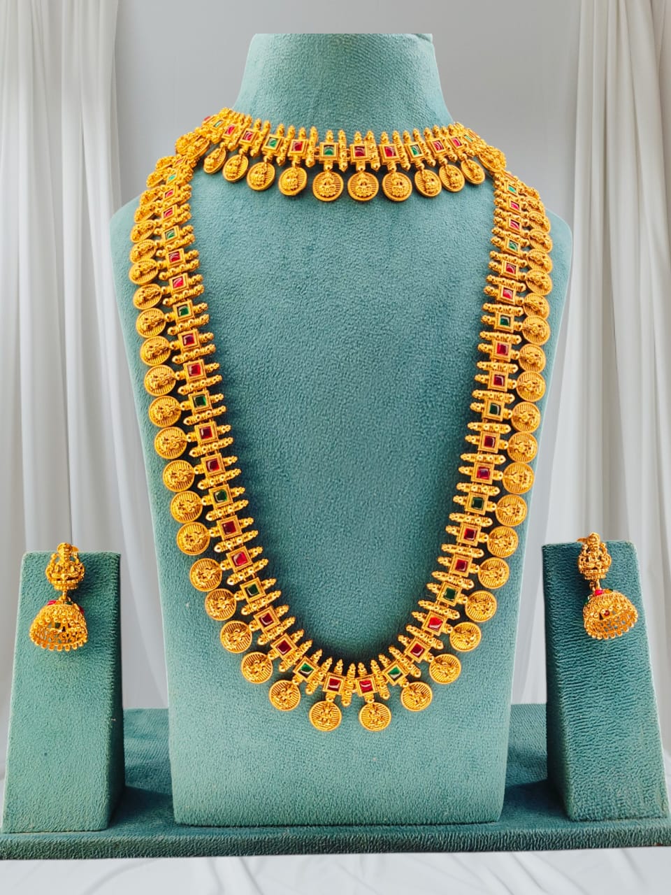 – Matching Earrings: The jhumka-style earrings complement the necklace beautifully.